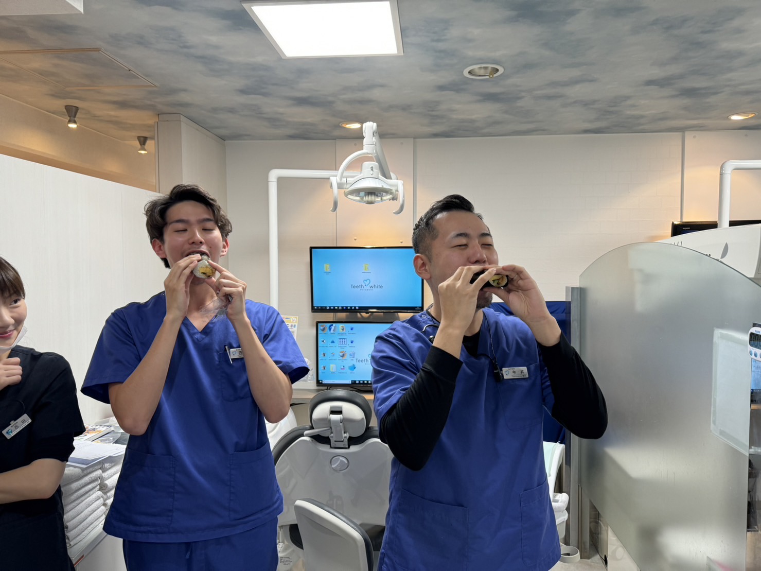 これからの医院を担う、今井先生と西沢先生が「歳徳神(としとくじん)」という神様がいる方角に向かい、恵方巻を一気に完食しました!