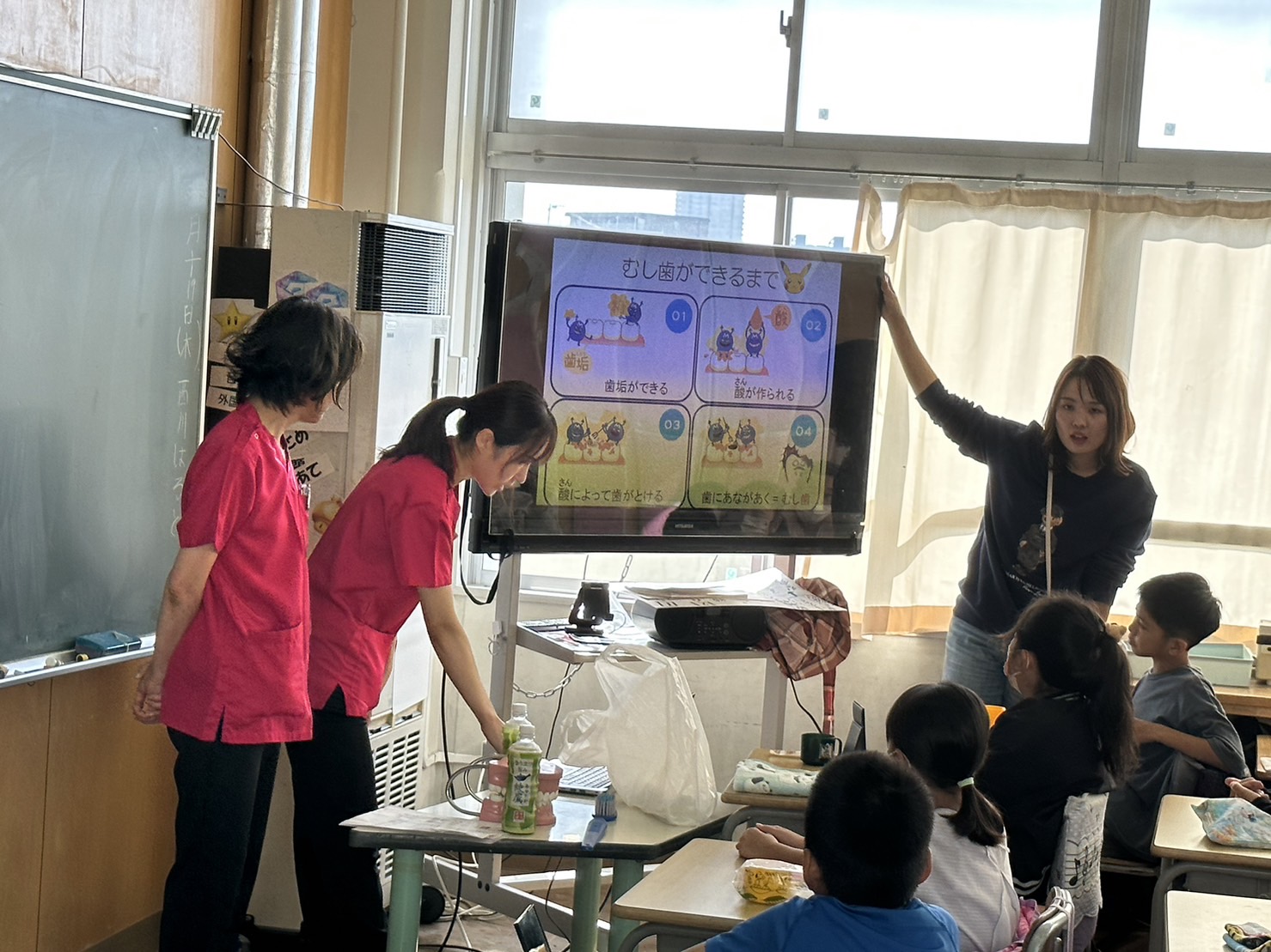 本日は歯科校医をしている小学校で、歯科衛生士さんと歯磨き指導を行いました。